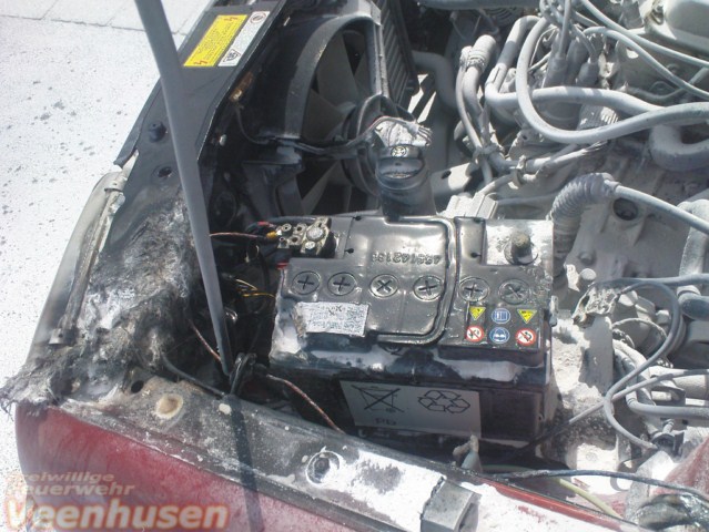 Ein Kamerad, der nach der Alarmierung auf dem Weg zum Feuerwehrgerätehaus fuhr, kam an der Einsatzstelle vorbei, und erkannte sofort das es sich hierbei um einen Entstehungsbrand handelte. Er reagierte sofort in dem er mit einem Pulverlöscher das Feuer schnell erfolgreich bekämpfen konnte. Damit konnte schlimmerer Schaden am Fahrzeug verhindert werden.