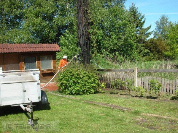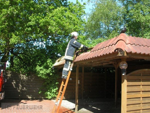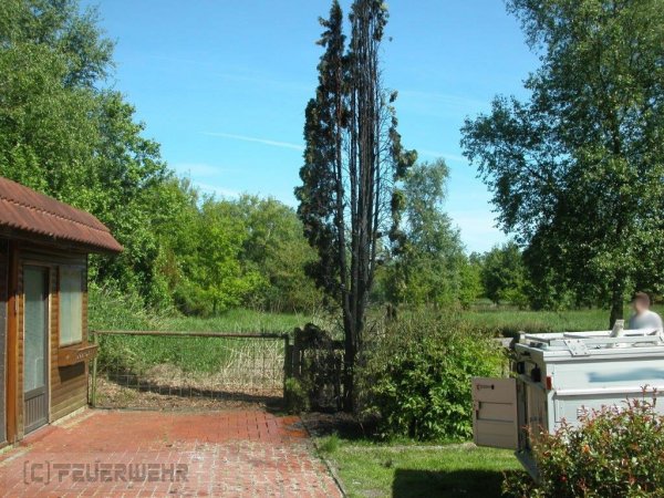 Veenhusen - Im Birkhahnweg in Veenhusen ist es am Dienstag zu einem Baumbrand gekommen. Die Leitstelle alarmierte zunächst die Feuerwehr Warsingsfehn zur Birkenstraße, schnell fiel der Fehler aber auf und die Feuerwehr Veenhusen wurde nach alarmiert. Da bereits alarmiert rückten die Warsingsfehner Kräfte als unterstützendes Tanklöschfahrzeug zum Birkhahnweg mit aus. Vor Ort konnte der brennende Baum dann zügig abgelöscht werden. Durch die starke Hitze wurden jedoch ein Gartenzaun und ein Carport in Mitleidenschaft gezogen. Die Feuerwehen konnten nach rund 45 Minuten wieder einrücken.