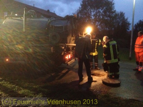 Während des Einsatzes kam auch ein Pumpenwagen vom Wasserverband zum Einsatz, der allerdings den Durchlass auch nicht "frei" bekommen konnte.