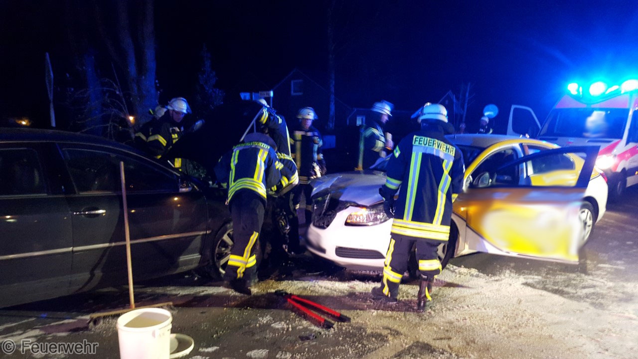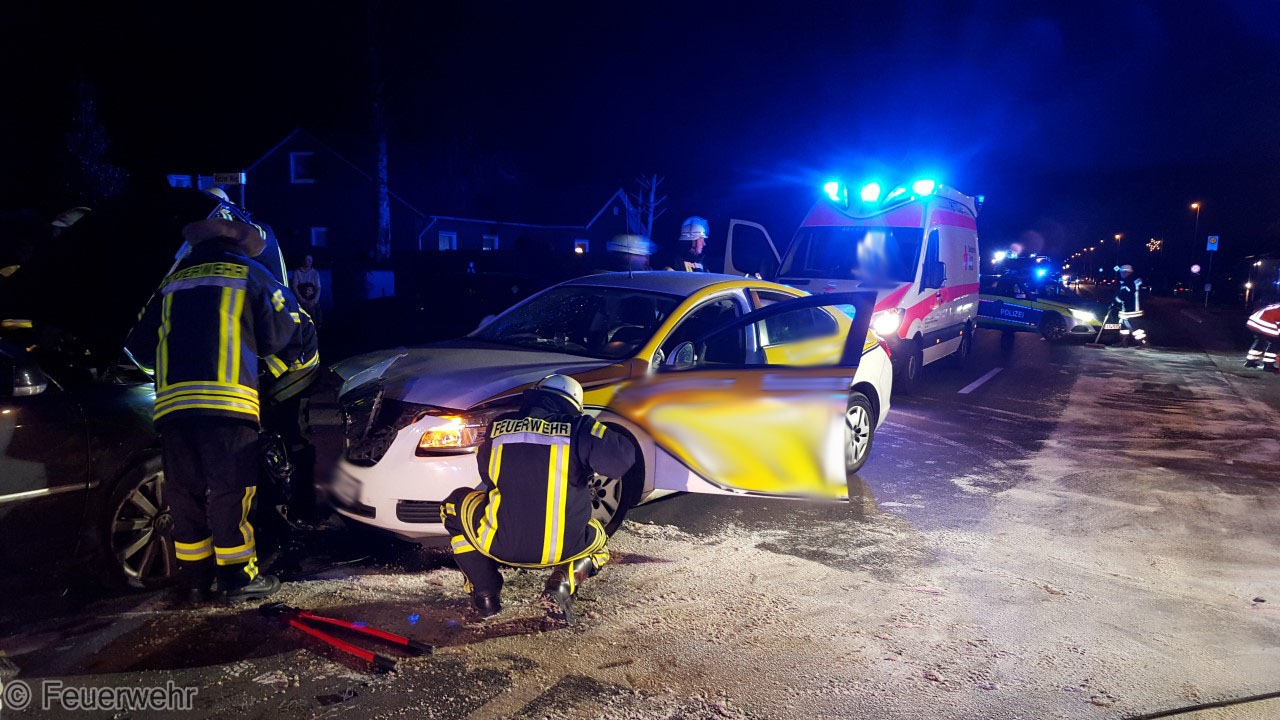 Am Sonntag, gegen 17.20 Uhr, ereignete sich auf der Hauptstraße in Höhe der Einmündung Auf der Kave ein Verkehrsunfall mit 3 leichtverletzten Personen. Nach derzeitigem Stand der Ermittlungen wollte ein 82-jähriger Pkw-Führer vom Gelände eines ansässigen Restaurants auf die Hauptstraße einfahren. Dabei übersah er den 39-jährigen Fahrer eines VW-Passats, der aus Richtung Warsingsfehn kam. Durch den Zusammenstoß wurde der Pkw des 82-Jährigen zurück auf das Parkplatzgelände geschleudert. Der VW stieß im weiteren Verlauf mit einem entgegenkommenden Taxi zusammen. Der Fahrer des Passats und die Insassen des Taxis (32-jähriger Fahrer und Fahrgast) wurden durch den Unfall leicht verletzt. Rettungswagen verbrachten sie in hiesige Krankenhäuser. Die Hauptstraße musste zur Unfallaufnahme, Bergung der Fahrzeuge und Reinigung der Fahrbahn durch eine Fachfirma für zwei Stunden voll gesperrt werden. Es entstand ein Sachschaden in Höhe von ca. 16000 Euro.