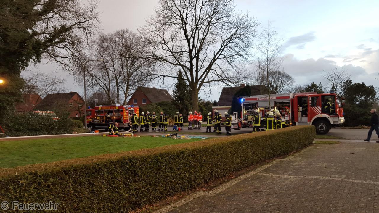 Weitere Einsatzkräfte aus Warsingsfehn wurde nachgefordert. Von Außen wurde das Dach zum Teil abgedeckt um an die Brandnester zu kommen. Neben Feuerwehr und Rettungsdienst waren auch die SEG Florian des DRK, die Polizei und der örtliche Energieversorger vor Ort. Insgesamt waren rund 60 Kräfte im Einsatz. Die Polizei hat die Ermittlungen aufgenommen.