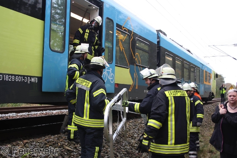 Über die Leitstelle wurde zudem ein Großaufgebot an Sanitätskräften und der Notfallmanager der Deutschen Bahn alarmiert. An der Einsatzstelle wurden verschiedene Abschnitte gebildet. Ein Teil der Kräfte befreite die Eingeschlossen aus dem verunfallten PKW während andere die Räumung des Zuges vorbereiteten.