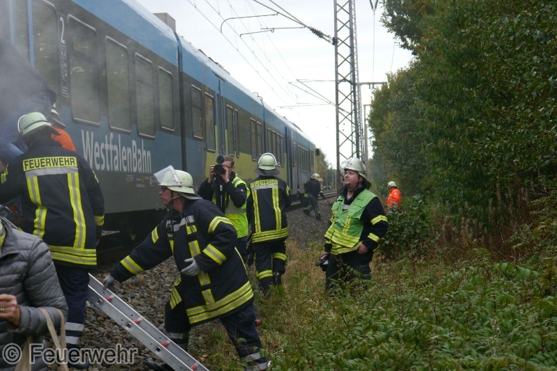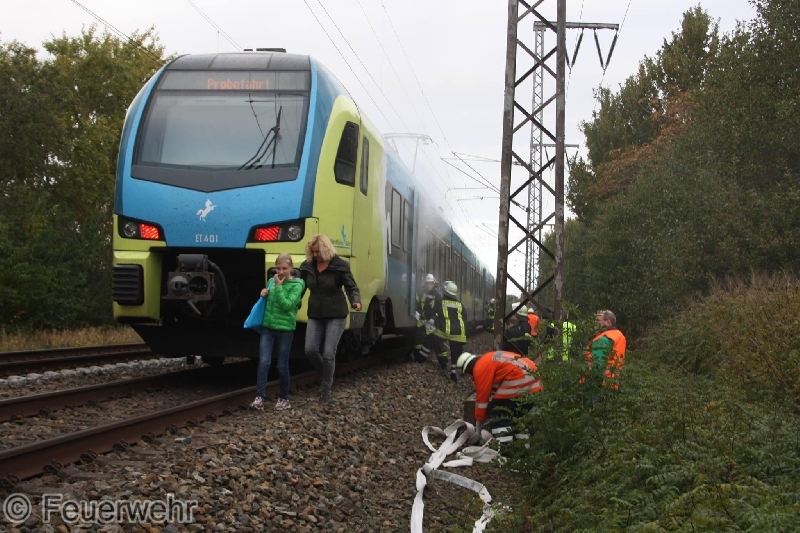Parallel zur Rettung der Personen hatte die Bahn die Oberleitung freigeschaltet und speziell ausgebildete Kräfte der Feuerwehr Oldersum nahmen eine Erdung vor. Im weiteren Verlauf wurde dann eine Brandbekämpfung an dem Zug durchgeführt.