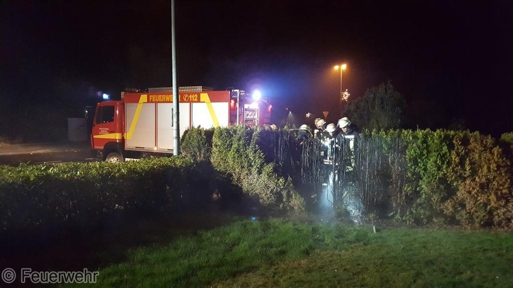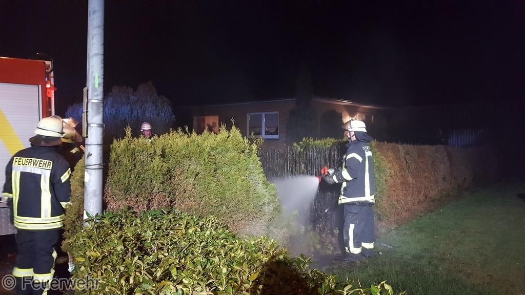 Im Bereich der Koloniestraße und Königsmoorstraße in Veenhusen ist in der Silvesternacht eine Hecke in Brand geraten. Die Feuerwehren aus Veenhusen und Neermoor wurden alarmiert. Zeitgleich hatte sich auf eine Funkstreifenbesatzung der Polizei auf den Weg gemacht. Die Beamten trafen zuerst ein und konnten mit ersten Löschversuchen zumindest eine weitere Ausbreitung stoppen. Beim Eintreffen der Feuerwehr mussten an der auf 1,5 Meter abgebrannte Hecke dann nur noch Nachlöscharbeiten vorgenommen werden. Der Einsatz dauerte rund eine halbe Stunde.