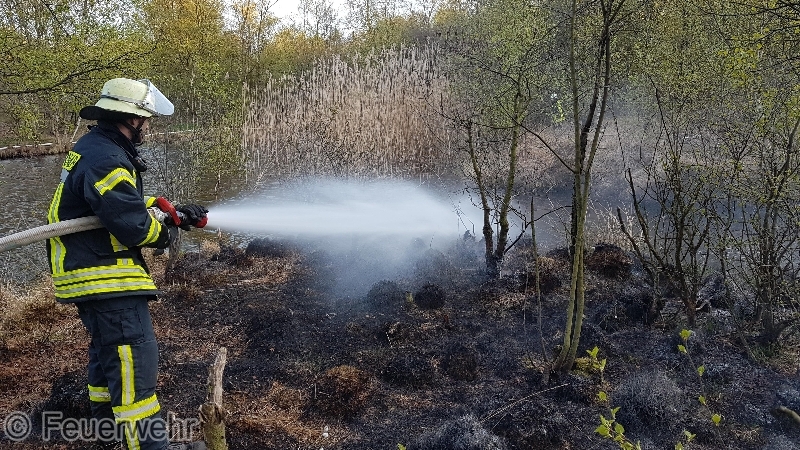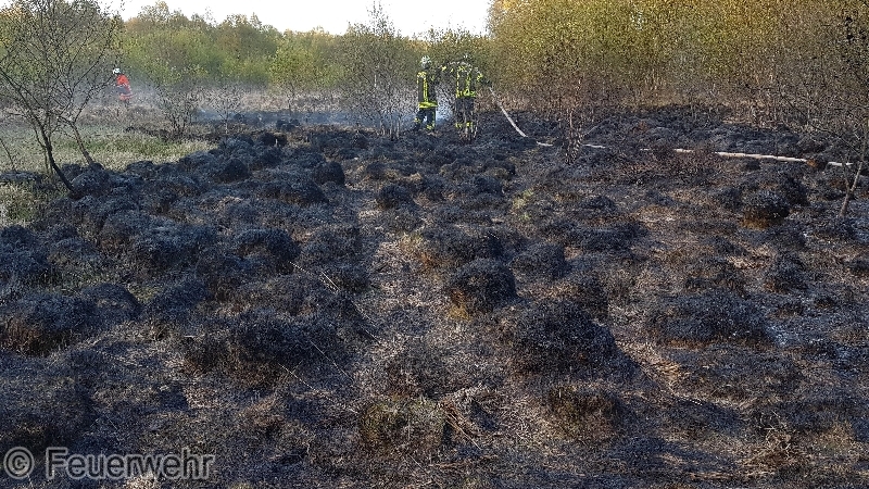Eine Ausdehnung auf den Moorboden konnte verhindert werden. Rund eine Stunde dauerten die Lösch- und Aufräumarbeiten an. Die Brandursache blieb unklar. Die Polizei war ebenfalls vor Ort.