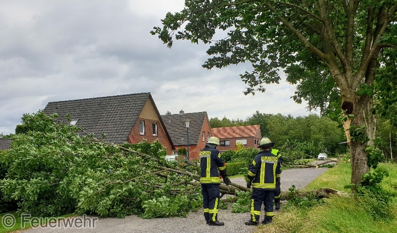 Am Samstag morgen um 9:24 Uhr wurde die Freiw. Feuerwehr Veenhusen über die Leitstelle in Wittmund zu einem Sturmschaden in den Moorweg gerufen.Anwohner hatte den Notruf gewählt, weil zwei umgefallende Bäume die Fahrbahn blockierten.