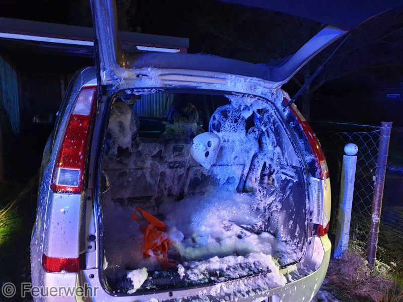 Am Montagabend den 01.02.21 gegen 21:30 Uhr wurden wir zu einer starken Rauchentwicklung aus einer Garage in die Wiesenstraße alarmiert.Vor Ort stellte sich heraus, dass ein PKW in der Garage in Brand geraten war.